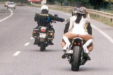 Salut les amis, je vai vous raconter ma pire aventure ou honte sur 2 roues... Quand j'avais 14 ans mes potes et moi trafiquions nos boguets tout les jours et nous echangion des pièces, un jour un copain m'a filler des poignées chromées pour mon ciao, tout heureux de mon aquisition je les ai montées mais après quelques jours le pote en question ma demmander de lui rendre... Rencunier comme je suis j'ai mis de la graisse dans ses foutues poignées histoire de lui rendre la monnaie de sa pièce héhéhé!!! Seulement il n'est jamais venu les chercher et apres quelques mois j'avais oublié mon jeste de vengeance et comme un con j'ai remis mes poignées... Le lendemain tout joyeux je vois une jolie nana a une fenetre et décide de fair le beau, je me mets en weeling la regarde mais a ce moment la ma poignée gauche fous le camp... Résultat je tire a droite dans des buissons avec les gazs bloqués a fond pendant une dizaine de secondes jusqua ce que je m'arrete avec le bras droit ensenglenter et le guidon de travers... Morale de l'histoire: ne jamais sen prendre au materiel mais a la personne et avant de fair le kéké il faut reflechir un temps sois peu!!! Morpi